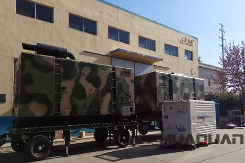 我們在現場看到,兩臺迷彩色的發電機組的功率均為500千瓦,動力主機則采用了環保、高效、穩定的玉柴發動機,加之華全匠人們個性化的設計,創新性的生產,以及超靜音、智能化、自動化技術的使用,使得發電機組在整體性能上展現出節能高效、綠色環保的特點,而機組高大美觀的形象設計在藍天白云的映襯下顯得更加英姿颯爽,所以,有華全員工高興地說,“這可是本年度華全 具顏值的發電機組呀”。據透露,這兩臺機組是西部戰區某部為野外施工作業而訂購的。我們都知道,由于中國西部以高原和山地為主,地廣人稀,空氣干燥,而且氣溫差異比較大,華全人在設計制造方面充分考慮了這些環境因素,使機組具有了較強的適應力,并且本著對客戶負責的原則,這兩臺發電機組在出廠之前也針對客戶的使用環境狀況進行了專門的性能測試,并列出詳細運行數據。華全人的這一做法也得到了客戶的肯定,贏得了客戶的信賴。而在當天發貨的發電機組中,還有兩臺“100千瓦靜音箱”是發往剛果民主共和國的,收貨地點在的剛果河(世界第二大河)的源頭附近,采購者為當地一家中資企業,主要是給企業在當地的銅鈷礦勘探和開采提供作業電源。